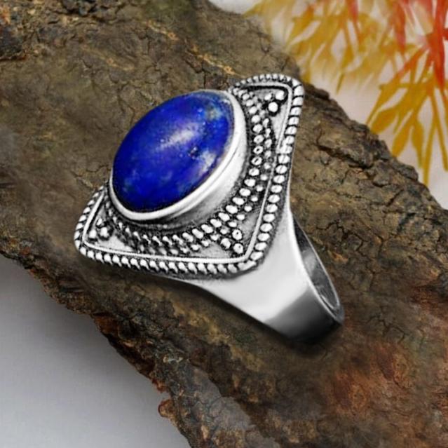 Solid 925 Sterling Silver Lapis Lazuli Gemstone Handmade Designer Statement Ring Jewelry Gift For Her — купить товар онлайн с бесплатной доставкой по всему миру!