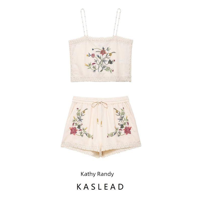 Kaslead Новая женская одежда Западный стиль Мода Вышивка Топ Повседневные шорты 5107077 5107078