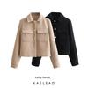 Kaslead New Women clothes Western Style Simple Graceful Trim Loop Velvet Outerwear 1293054