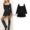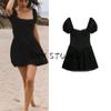 Spring New Women's Clothing French Style Stringy Selvedge round Neck Lantern Sleeve Short a Words Mini Dress 1264747