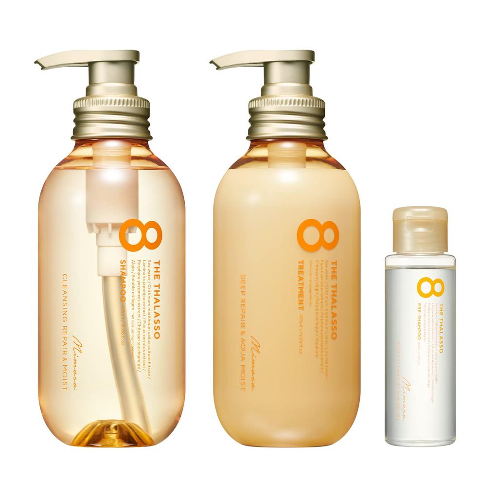 [Set contents] ・Eight the Thalasso Cleansing Repair & Moist Serum Shampoo 475mL ・Eight the Thalasso Deep Repair & Aqua Moist Serum Treatment 475mL ・Eight the Thalasso Reset Cleansing & Head Spa Serum Pre-Shampoo 80mL