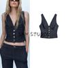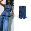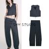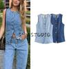 Женская весенняя одежда Джинсы с высокой талией в стиле баллон 3777025 Джинсовый жилет без рукавов с V-образным вырезом 3777024