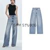 Женская весенняя одежда Джинсы с высокой талией в стиле баллон 3777025 Джинсовый жилет без рукавов с V-образным вырезом 3777024 — купить товар онлайн с бесплатной доставкой до всему миру!