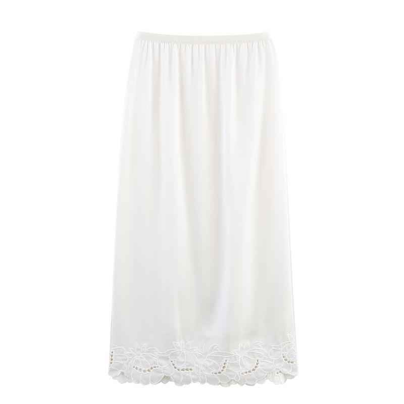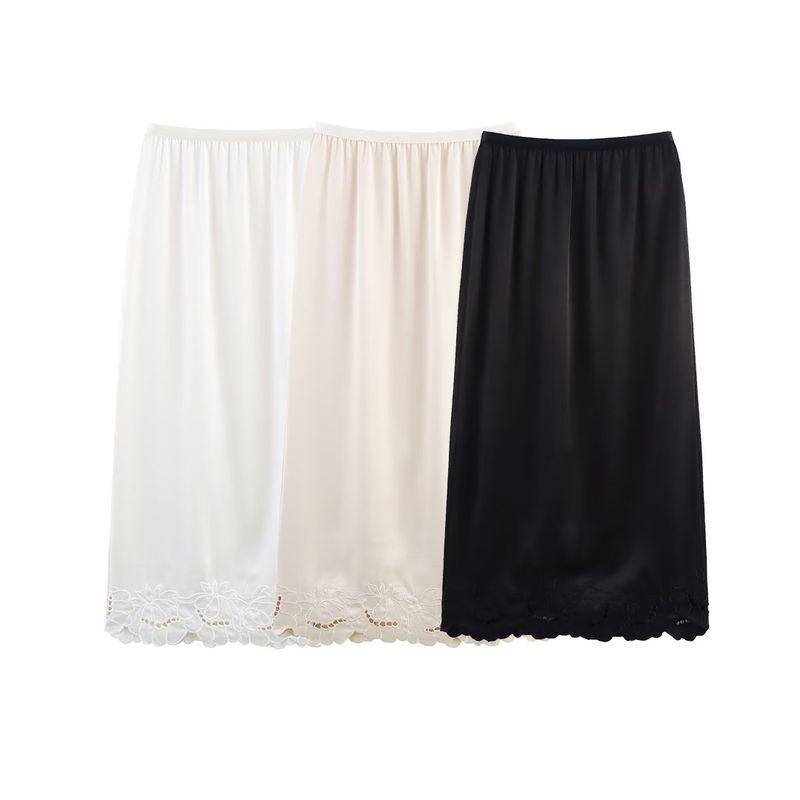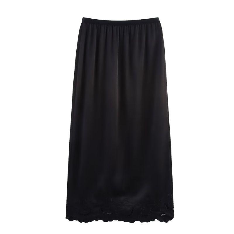 Kaslead New Women clothes Western Style Carved Hole Embroidery Flower Acetate Satin Split Elastic Waist Skirt