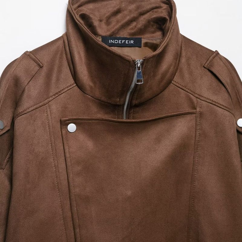 Kaslead New Women clothes Western Style Versitile Fashion Zip-up Deerskin Velvet Jacket