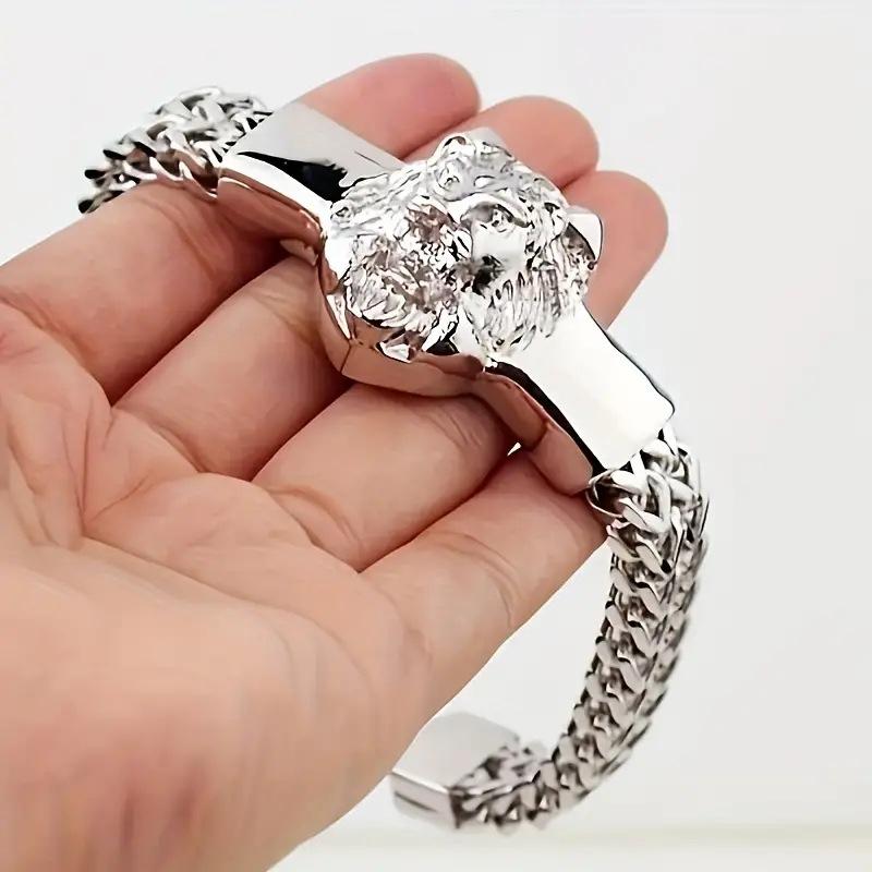 Мужской браслет из нержавеющей стали с подвеской в виде золотой головы льва - Модный аксессуар в рок-стиле
