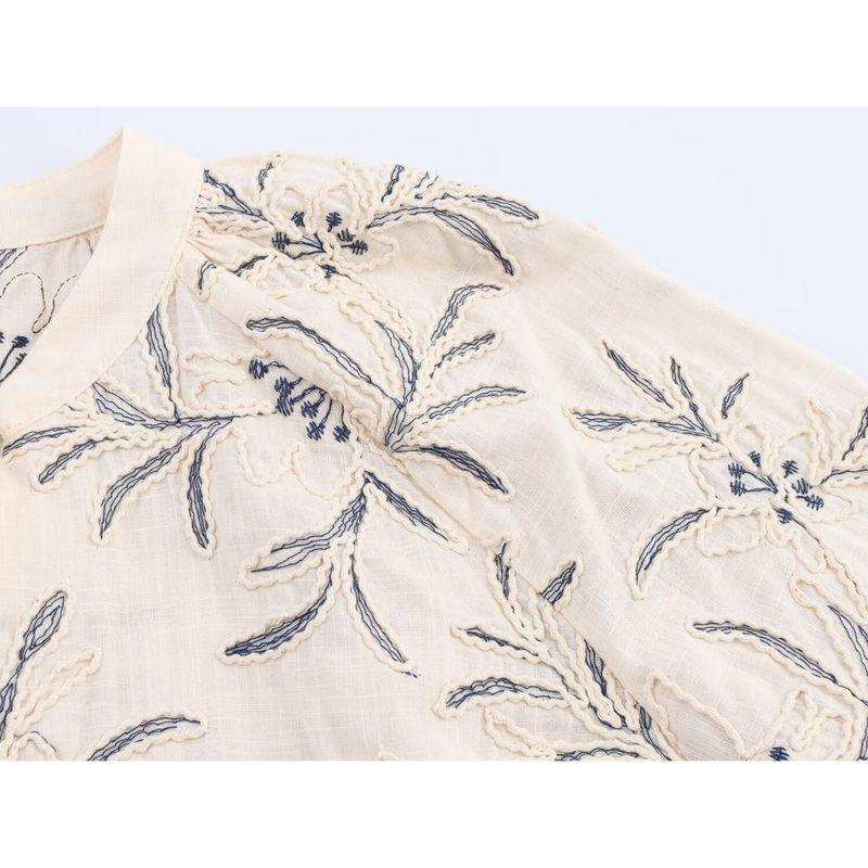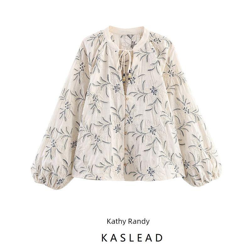 Kaslead New Women clothes Western Style Simple Distressed Embroidery Construction Shirts 8741235 080