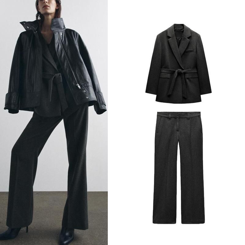 Fall and Winter New Women's Clothing Wool Blend with Belt Suit Outwear 3736248 Straight-Leg Trousers 3736259