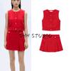 Spring and Summer Women's Clothing Commute Style Minimalist All-Matching Slim Fit round Neck Sleeveless Single-Breasted Short Vest Vest