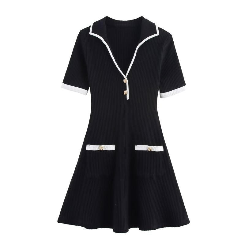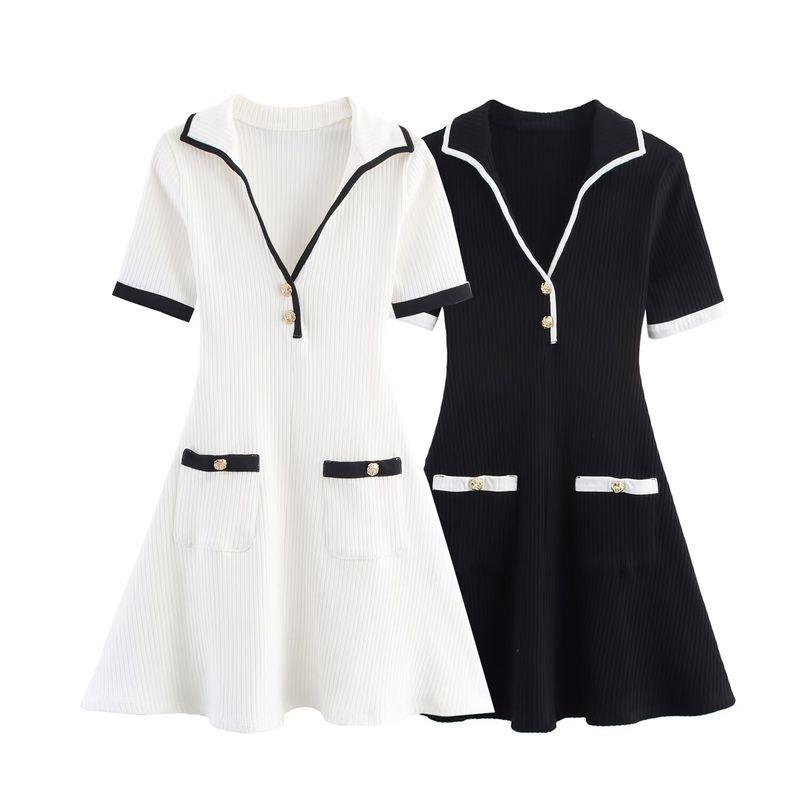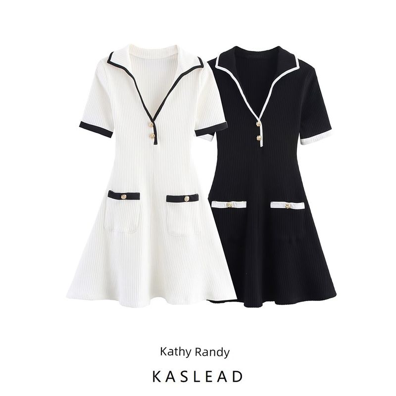 Kaslead New Women clothes Western Style Fashion Metal Button Rib Dress 4770154 064