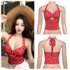 Summer New Product Women's Clothes Minimalist V Neck Sleeveless Scarf with Polka Dot Print French Romantic Tops 0347316