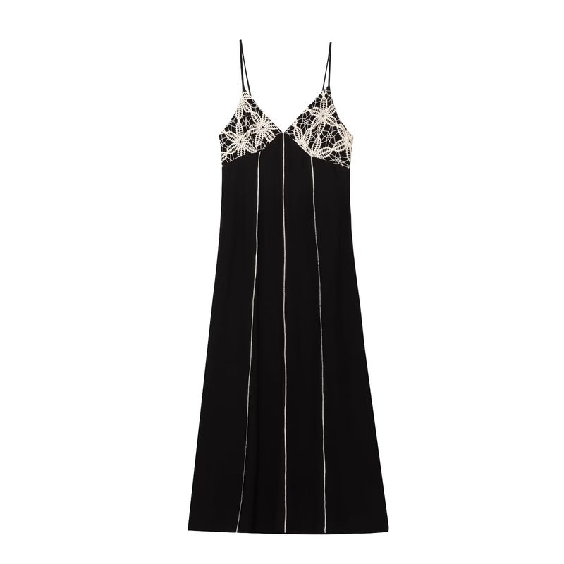 Kaslead Новое поступление Женская одежда Модный стиль Вышивка V-образный вырез На бретелях Миди юбка Платье 3897112 093