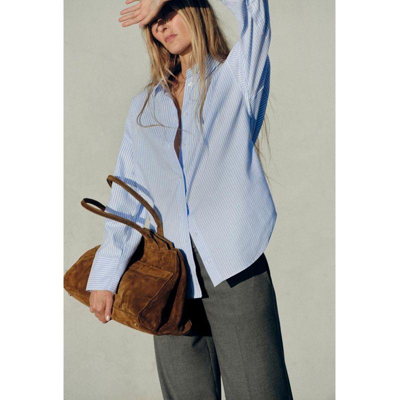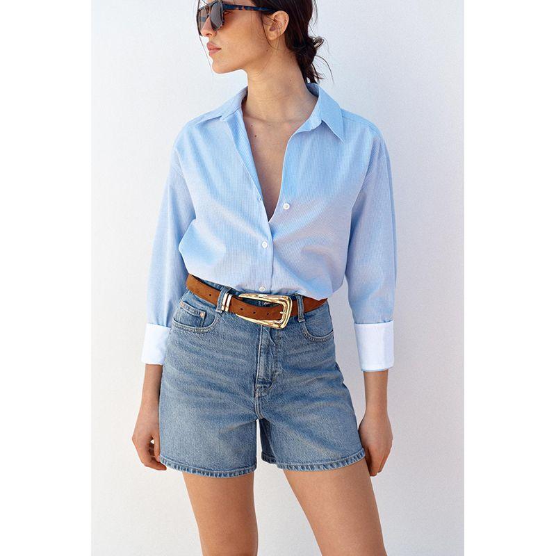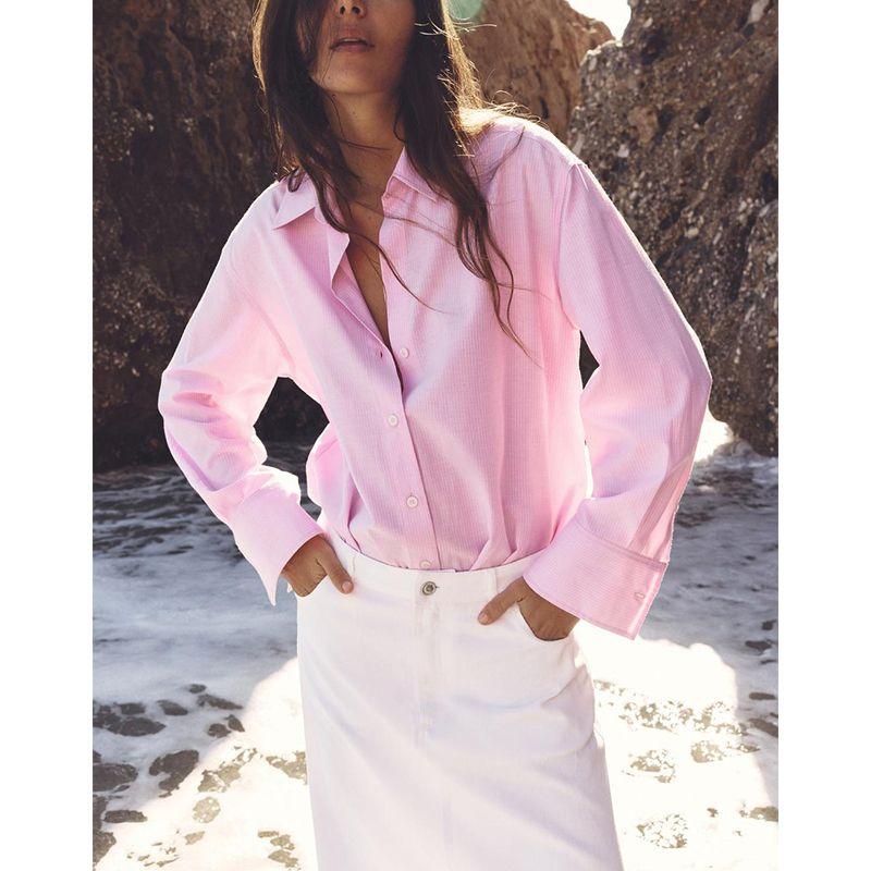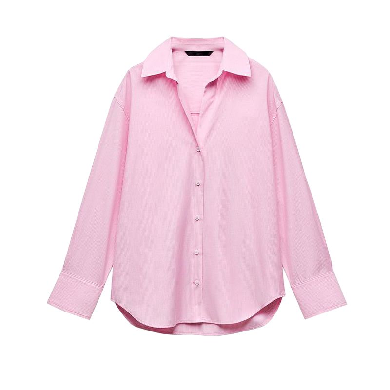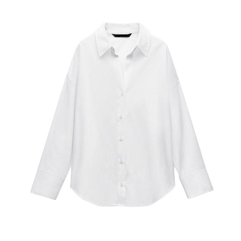 Spring and Summer Women's Clothing Asymmetric Hem Cotton Blend Long Sleeves Lapel Casual Oxford Shirt 8741049