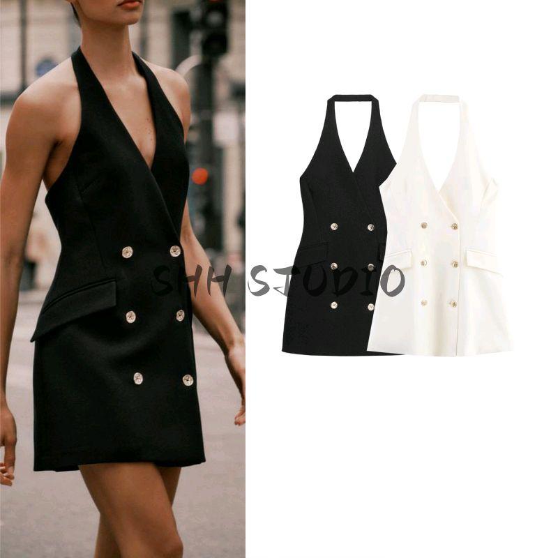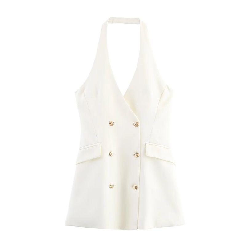 Autumn New Women's Clothing Commute Style Double Breasted Button Decoration Hanging Collar Mini Business Suit and Dress 3608536