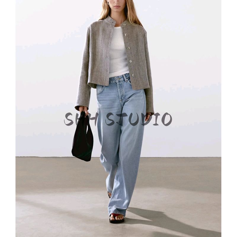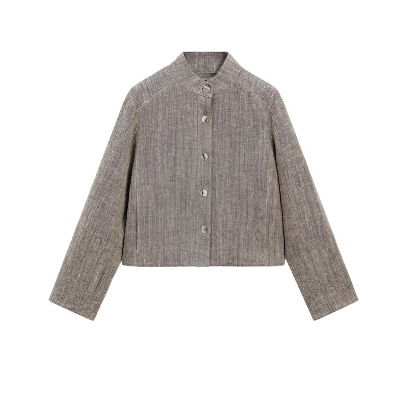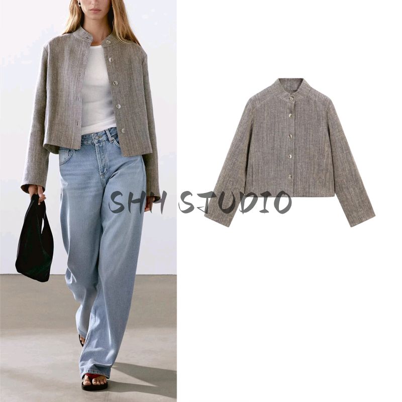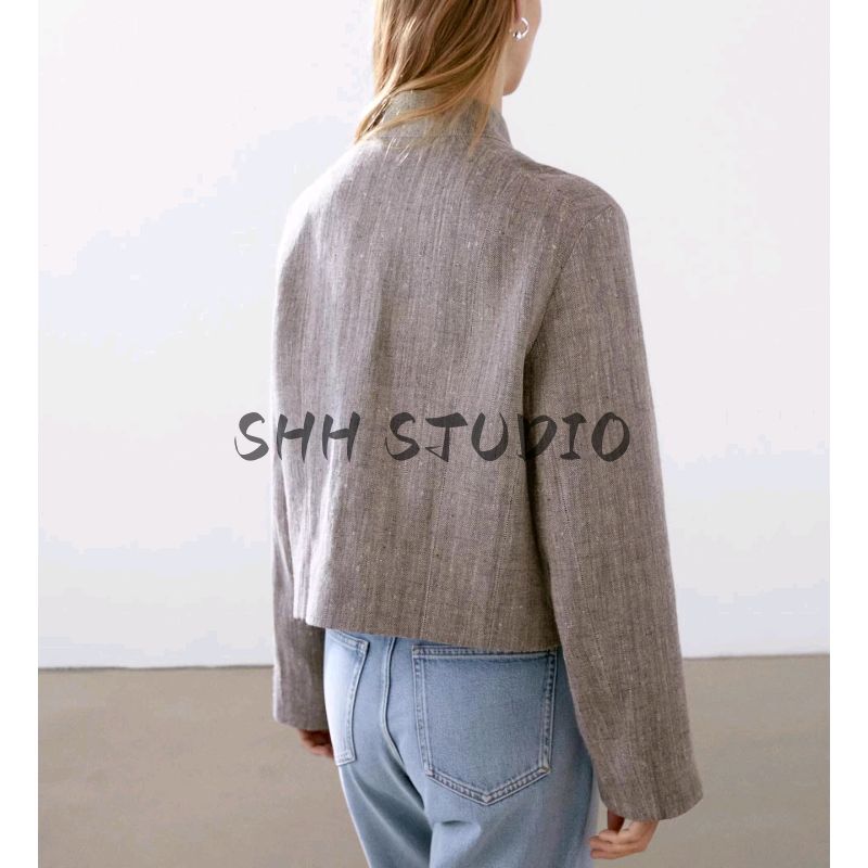 MD Весна/Лето Новое поступление Женская одежда Повседневный Минималистичный стиль Old Money Расслабленный Льняной бленд Воротник-стойка Верхняя одежда 6778772