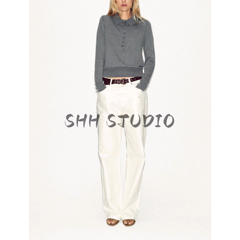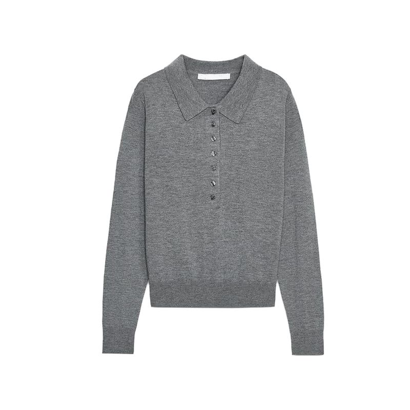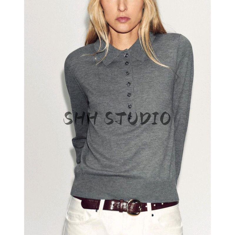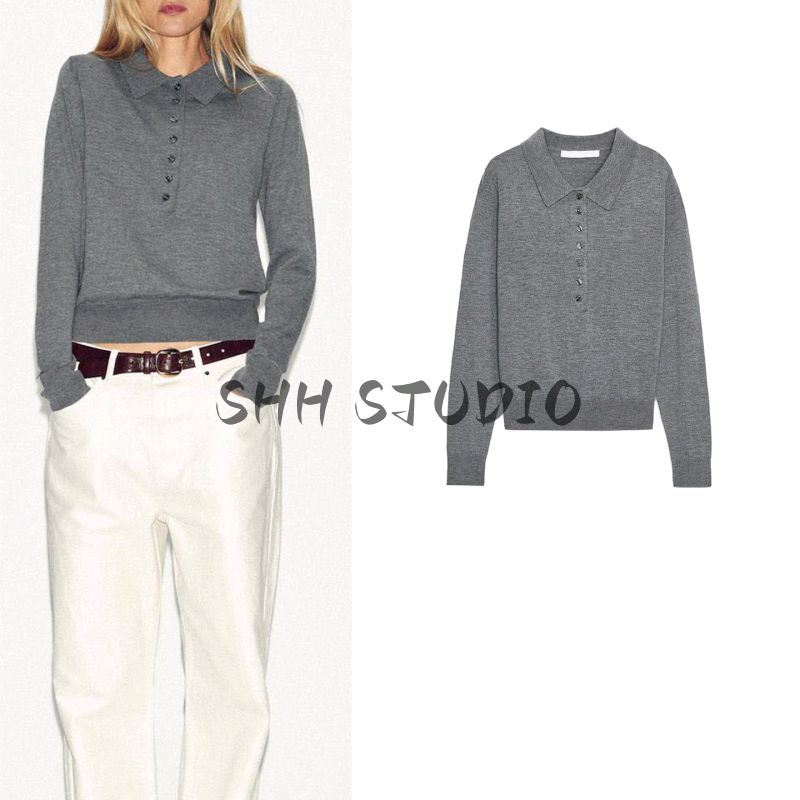 Осень Новая Женская одежда Свободный Стиль Декорированный Ряд Пуговиц Длинный рукав Воротник Поло Однотонная Вязка 2142271