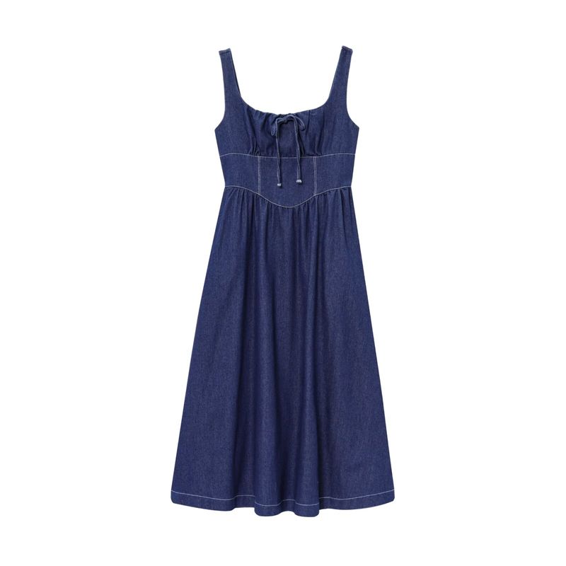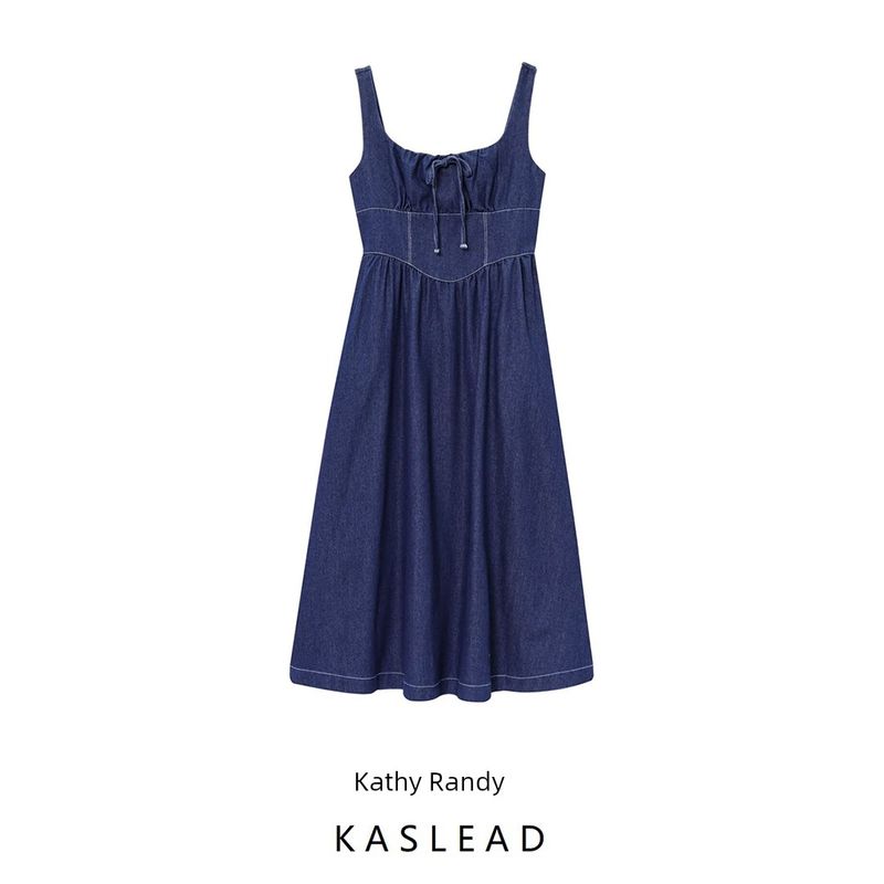 Kaslead Новая женская одежда Западный стиль Мода Простой Облегающий Джинсовый жилет Платье