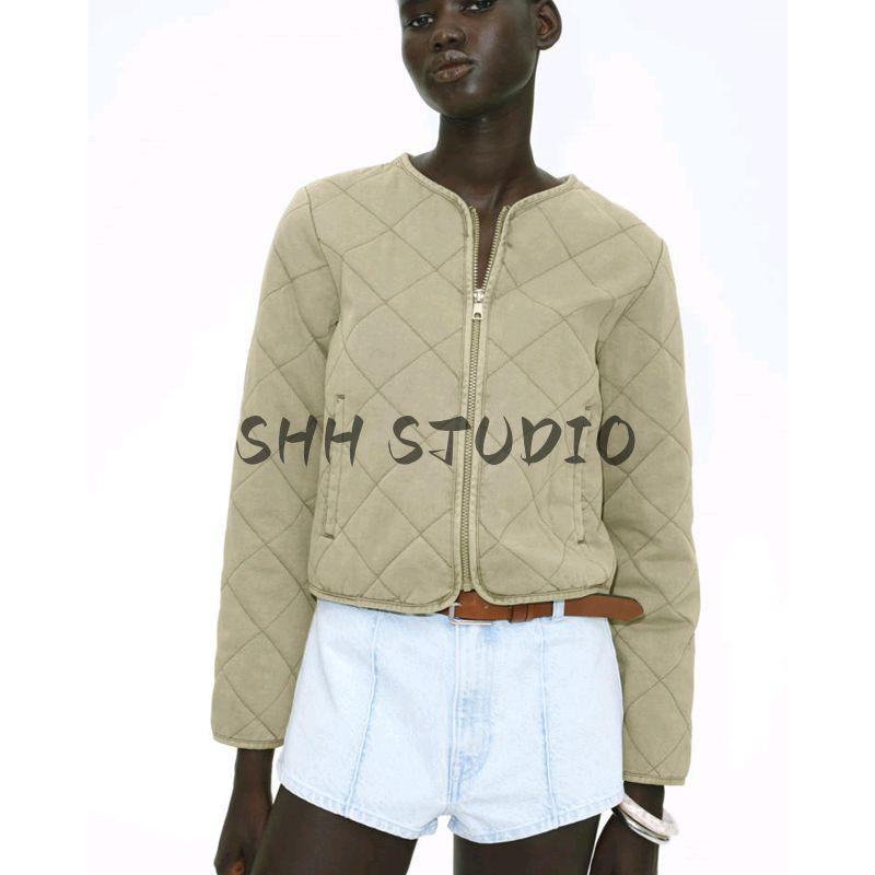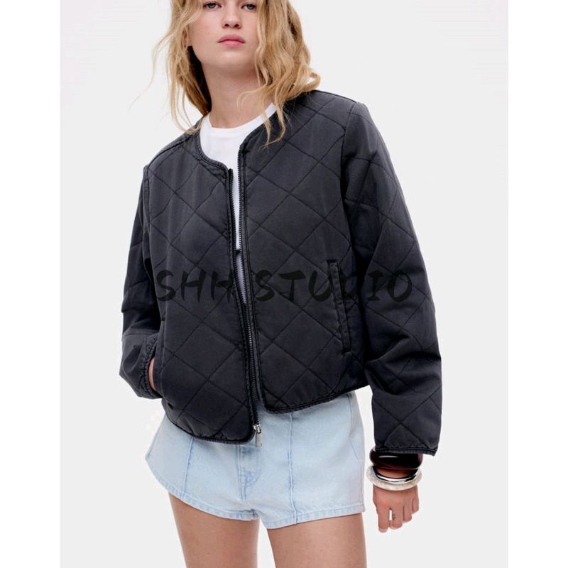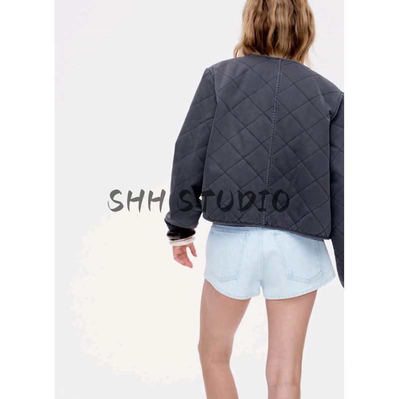 Летняя новинка Женская французская куртка с круглым вырезом и длинными рукавами, модная повседневная стеганая хлопковая верхняя одежда 1264166