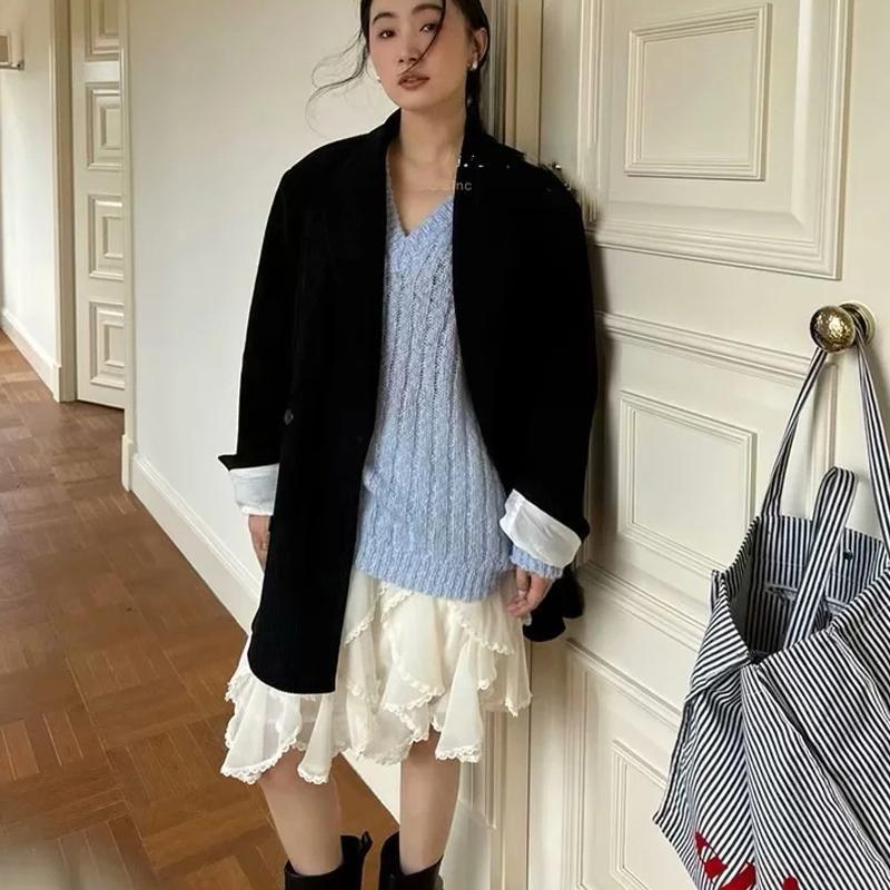 Fall and Winter New Women's Clothing Fashion Style French Casual Easiest for Match Lace Trim Mid Length Long Length Mini A- line Skirt