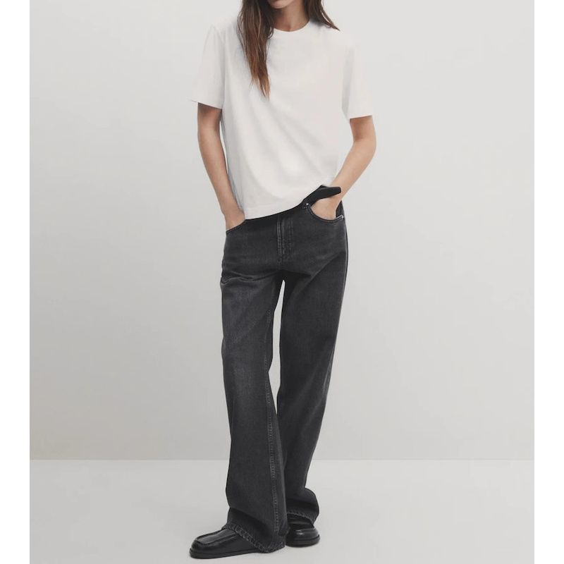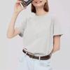 MD Spring New Arrival Women's Gray Basic Minimalist Loose Plaid Cotton Boyfriend round Neck T-shirt 6218503