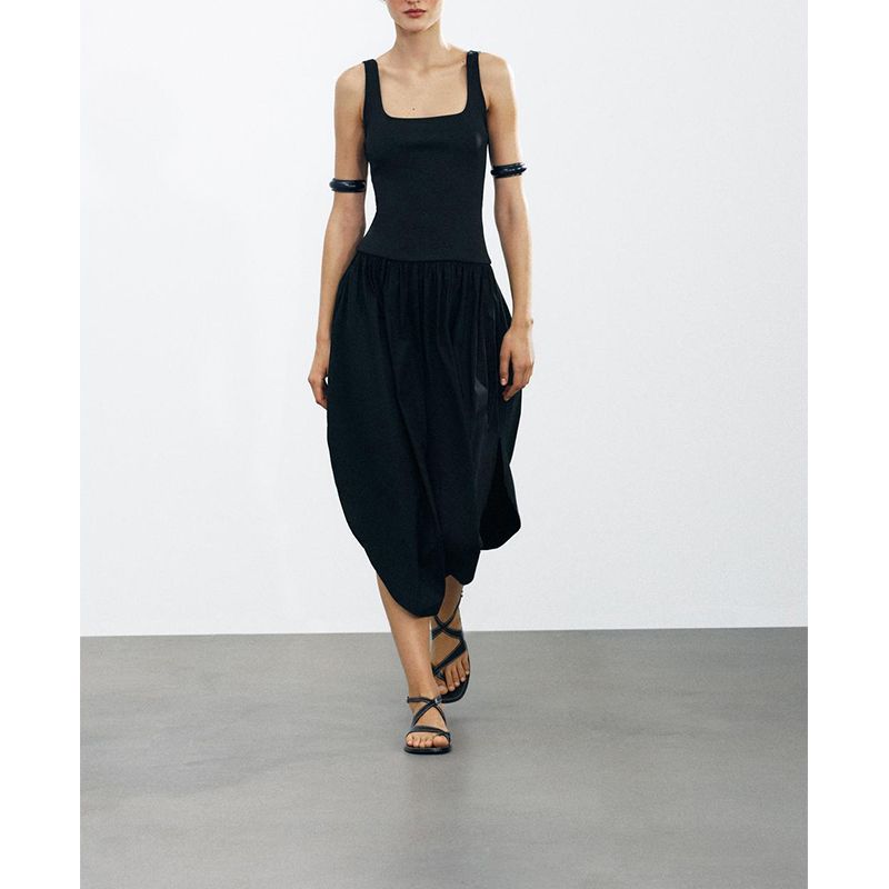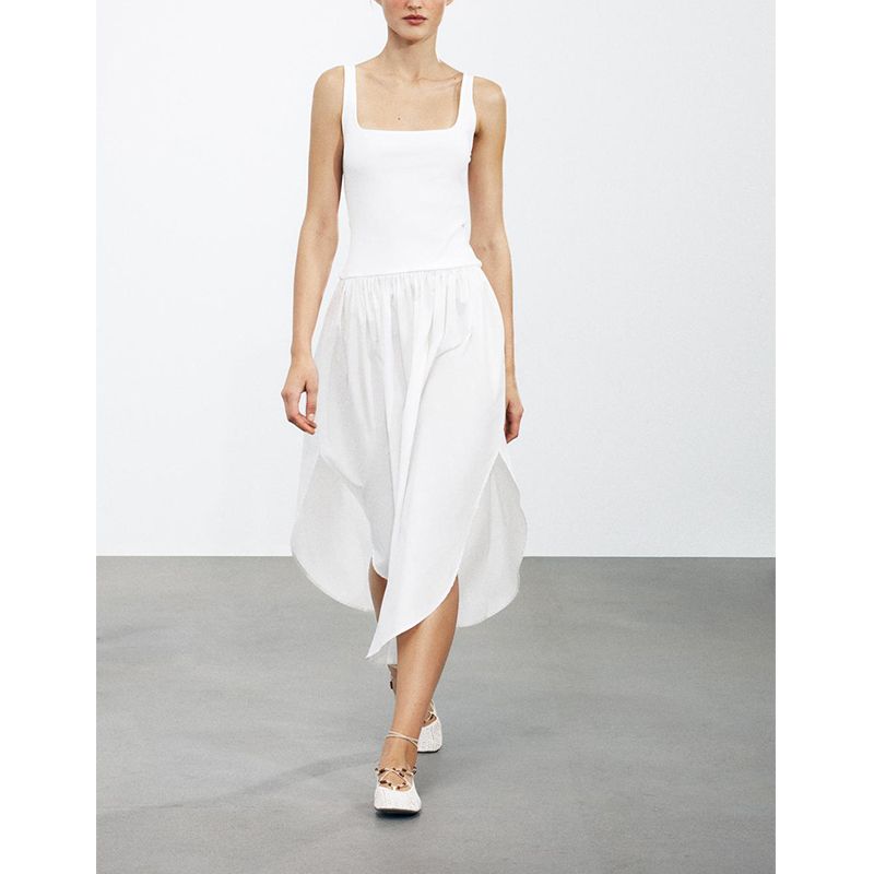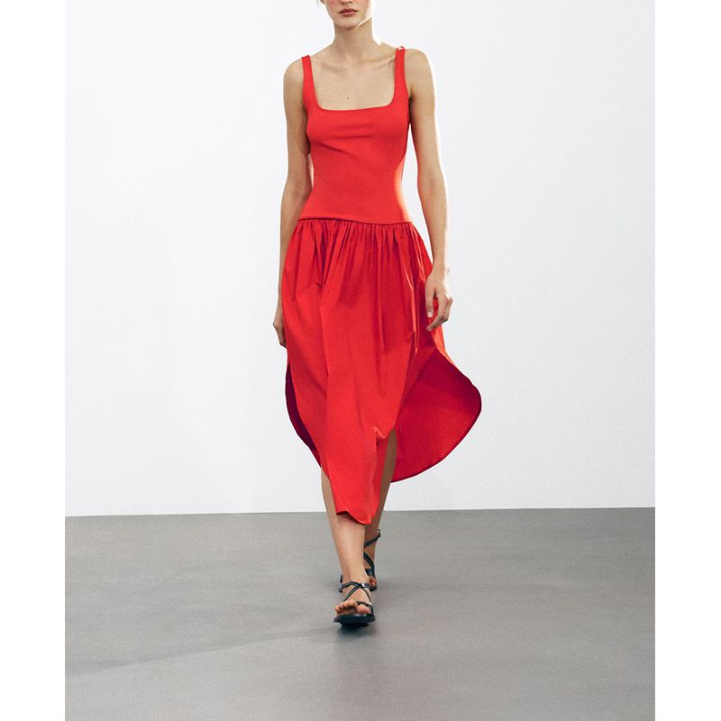 Spring and Summer New Women's Clothing French Style Circular Lower Hem Patchwork Wide Shoulder Strap Square Collar Midi Skirt Dress 4770208