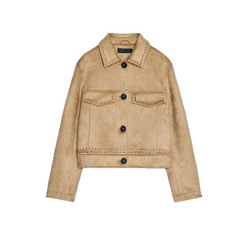 Весенняя женская одежда Лацкан Длинный рукав Тканые детали Декоративный эффект замшевой текстуры Куртка 6318037
