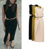 Summer New Product Women's Clothes Vacation Style Slit Hemline at Hem Ruched Decorative Sleeveless Midi Skirt Dress 2544324