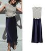 Autumn New Women clothes round Neck Sleeveless Vest Poplin Patchwork Midi Dress 8372046 8351224