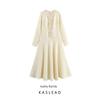 Kaslead New Women clothes Western Style Fashion Oversized Swing Square Collar Long sleeve dress