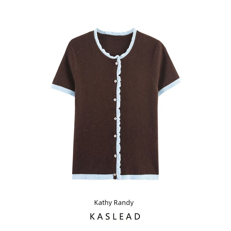 Kaslead New Women clothes Western Style Fashion Simple Contrast Color Knitted Short sleeve Outerwear 0014114 700