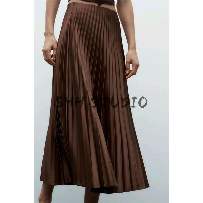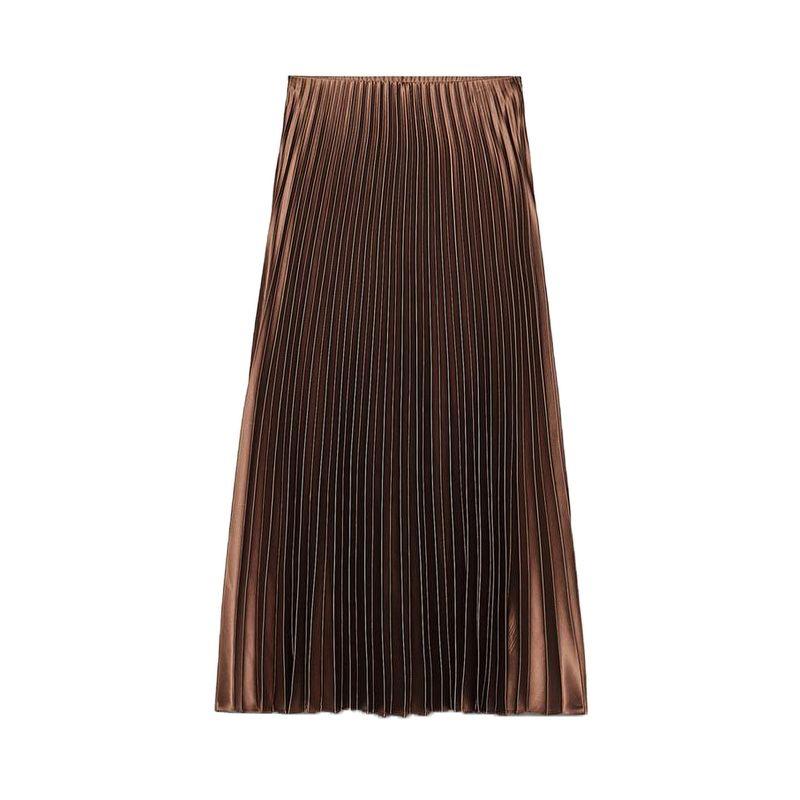 Spring New Women's Clothing French Style Design Multi-Color Silk Satin Texture Midi Skirt Pleated Skirt 3067401