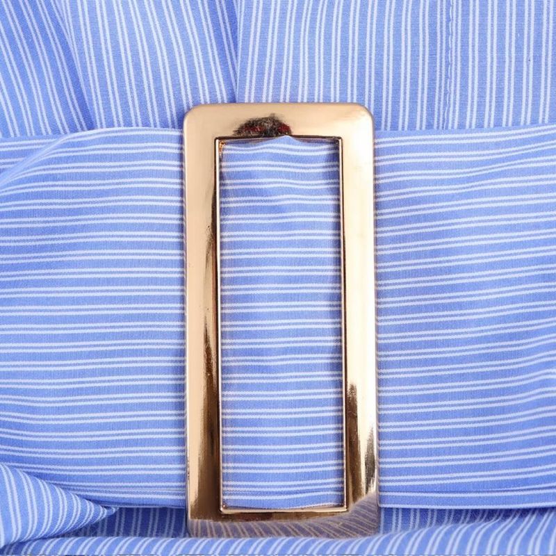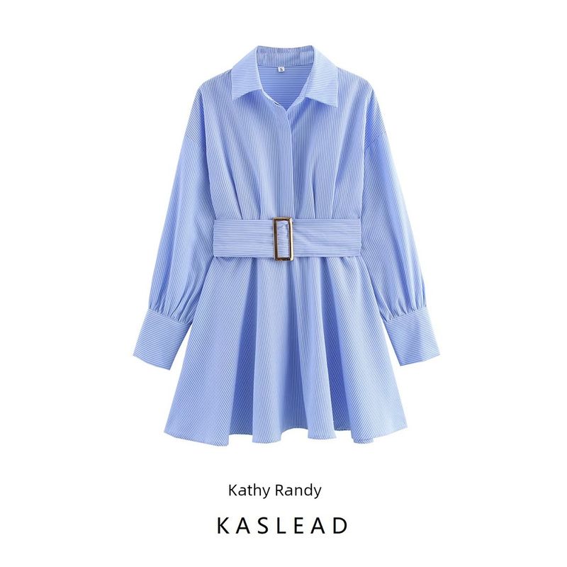Kaslead New Arrival Women's Clothing Fashion Style Fashion Minimalist Stripes with Belt Long Sleeves Dress