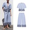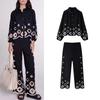 Spring New Design Sense Retro Short V-neck Embroidered Vest High Waist Wide Leg Casual Embroidered Trousers