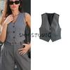 Spring and Summer New Women's Clothing Minimalist Style V Neck Sleeveless Decorated Row Button Short Candy Color Vest Jacket 2347888