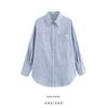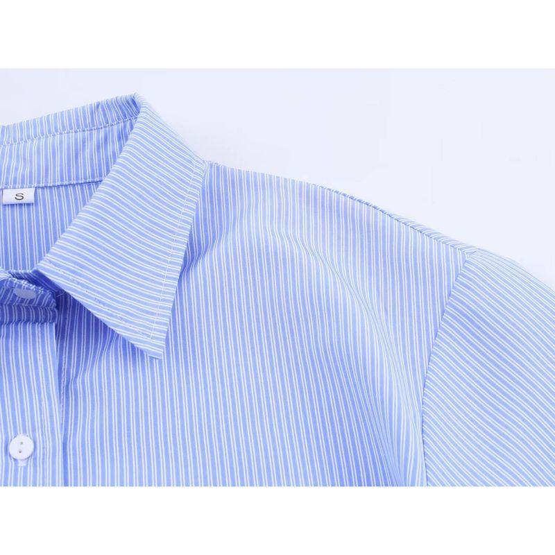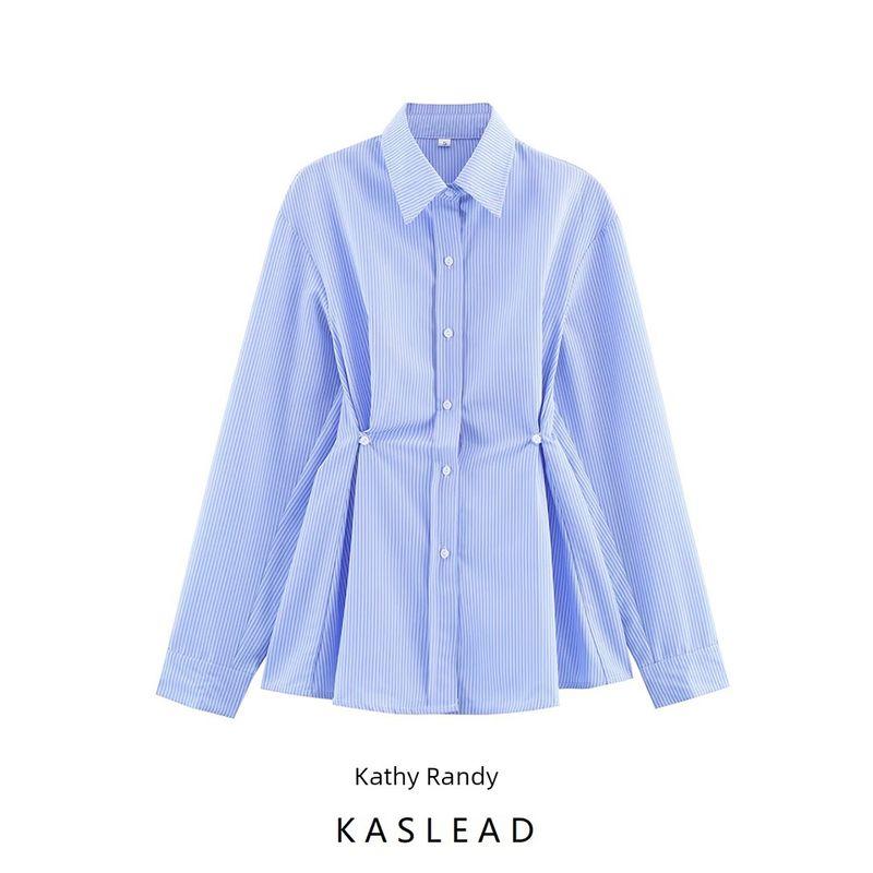 Kaslead New Women clothes Western Style Elegant All-Match Waist Hugging Stripe Commuter Style Shirts