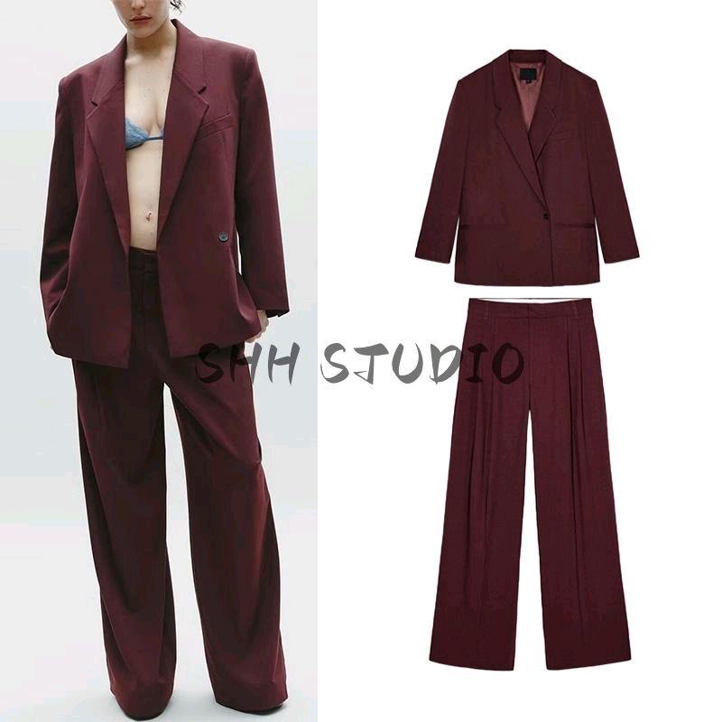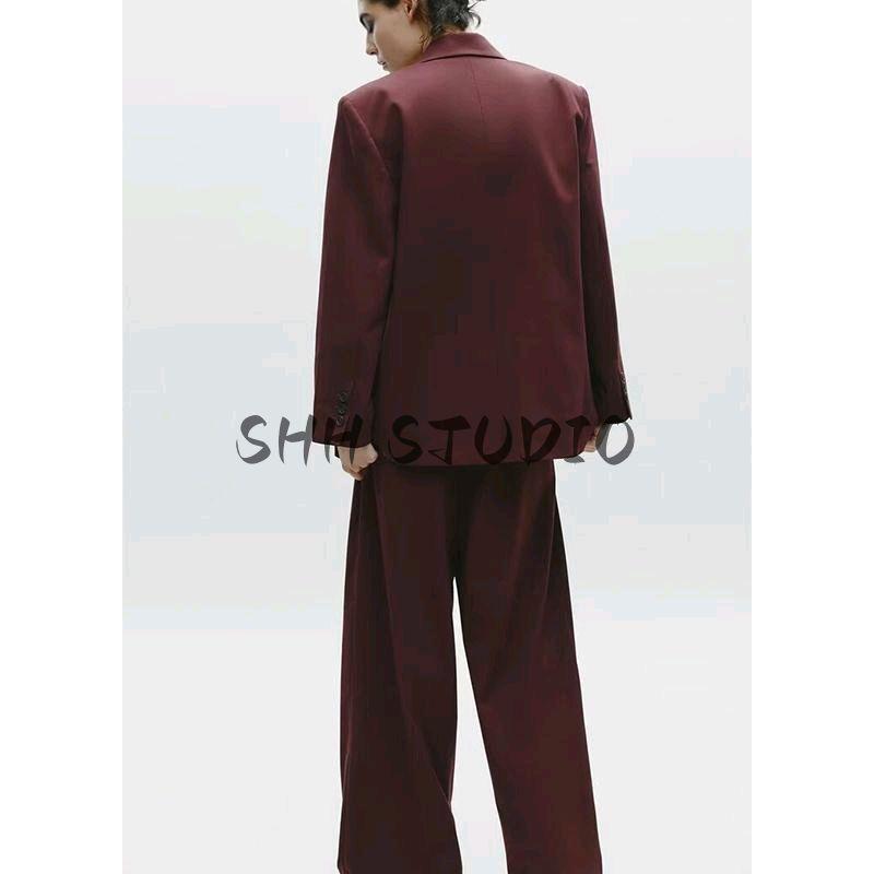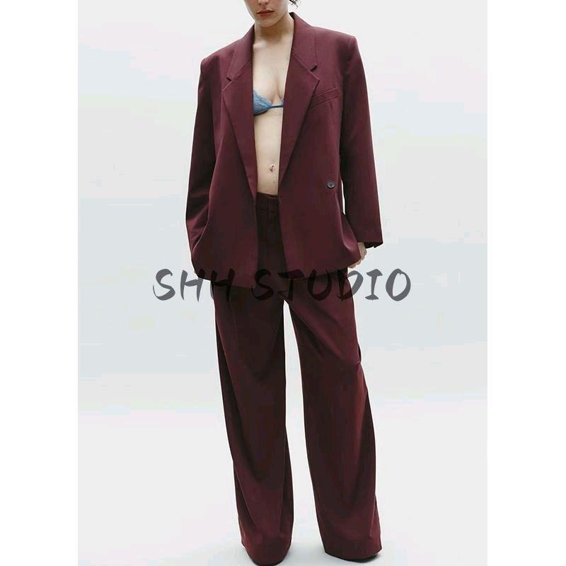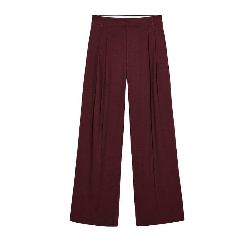 Брюки кэжуал с высокой талией, декорированные ремешком, с двойными складками 2180403 Двубортный свободный кэжуал пиджак 2010738