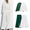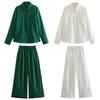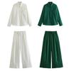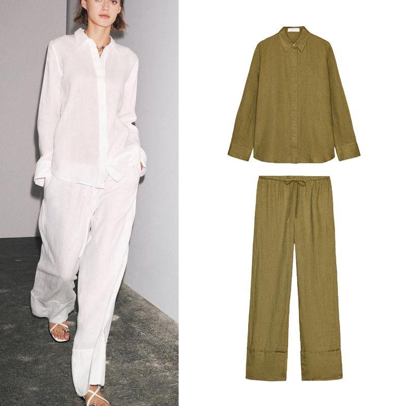 Linen Blend Long Sleeves Lapel Shirt 4786090 Linen Blend Wide Leg Mid Waist Casual Pants 4786091