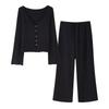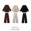 Kaslead New Women clothes Western Style Fashion Texture Sense V-neck Long sleeve Top Loose Straight Pants Set
