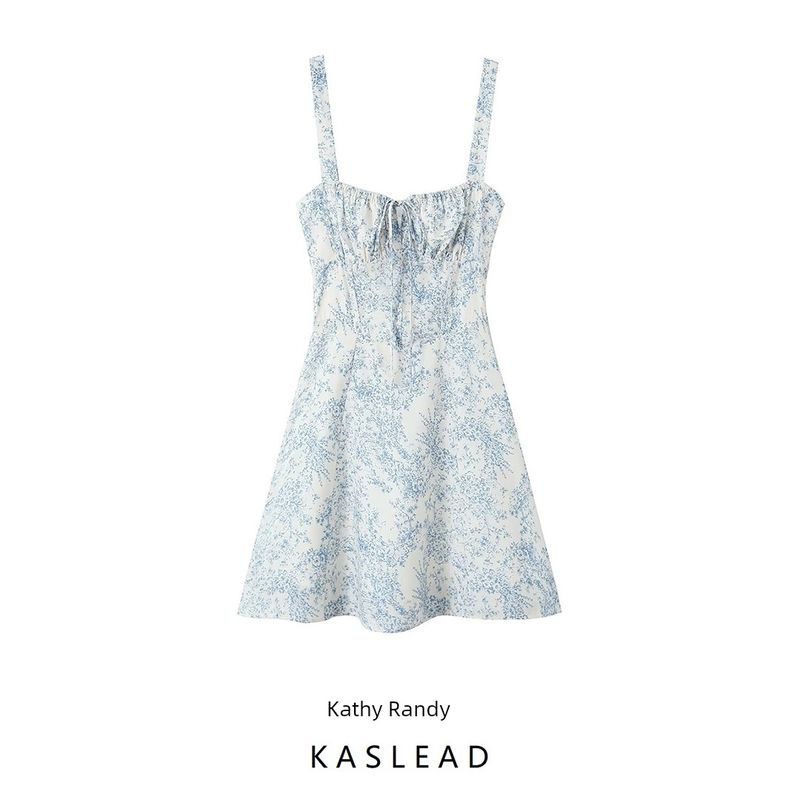 Kaslead Новое поступление Женский модный стиль Мода Французская юбка-сарафан с кулиской на талии с принтом сине-белого фарфора