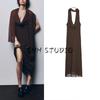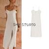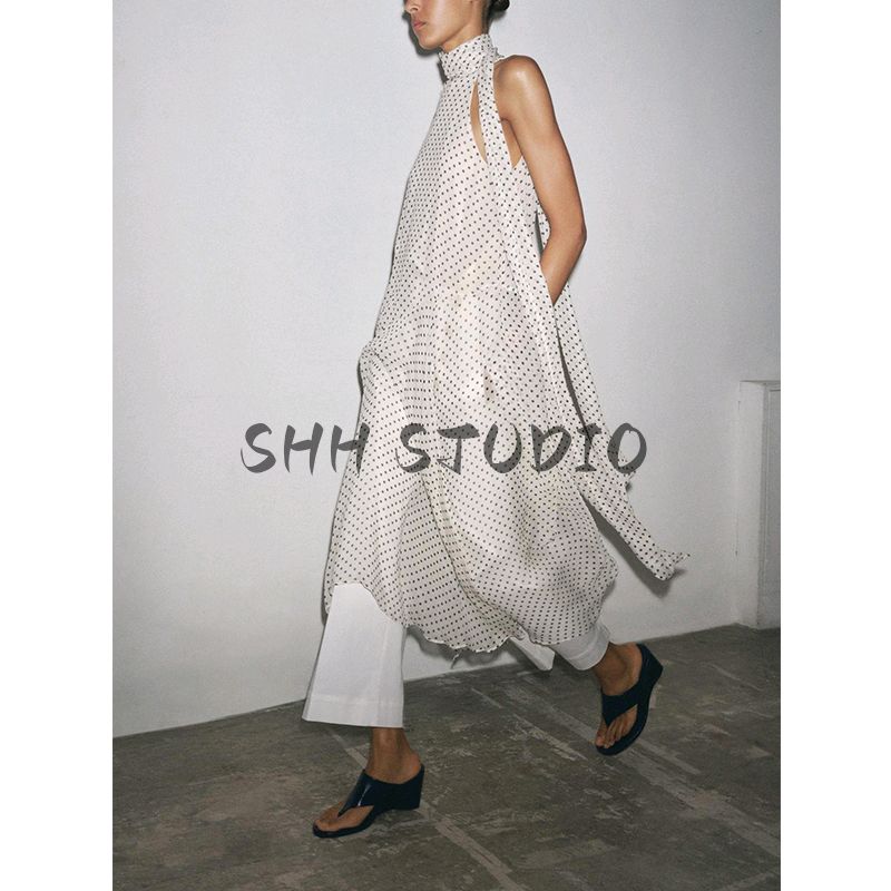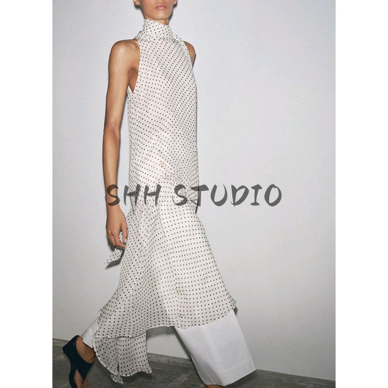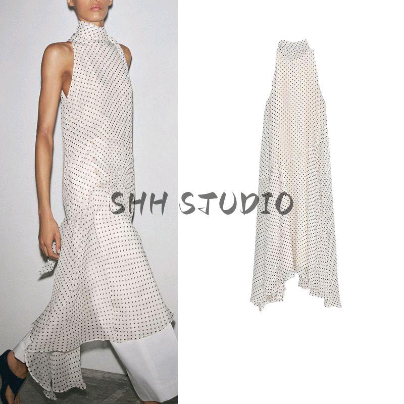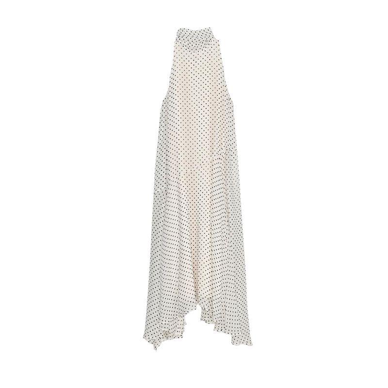 Spring and Summer New Women clothes Bowknot Decoration Asymmetric Hem Polka Dot Hanging Collar Dress 5289042