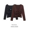 Kaslead New Women clothes Western Style Fashion Simple V-neck Long sleeve Knitted Outerwear 4192005 712