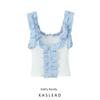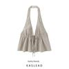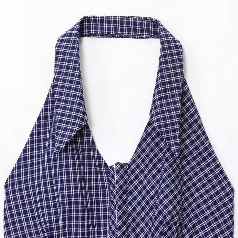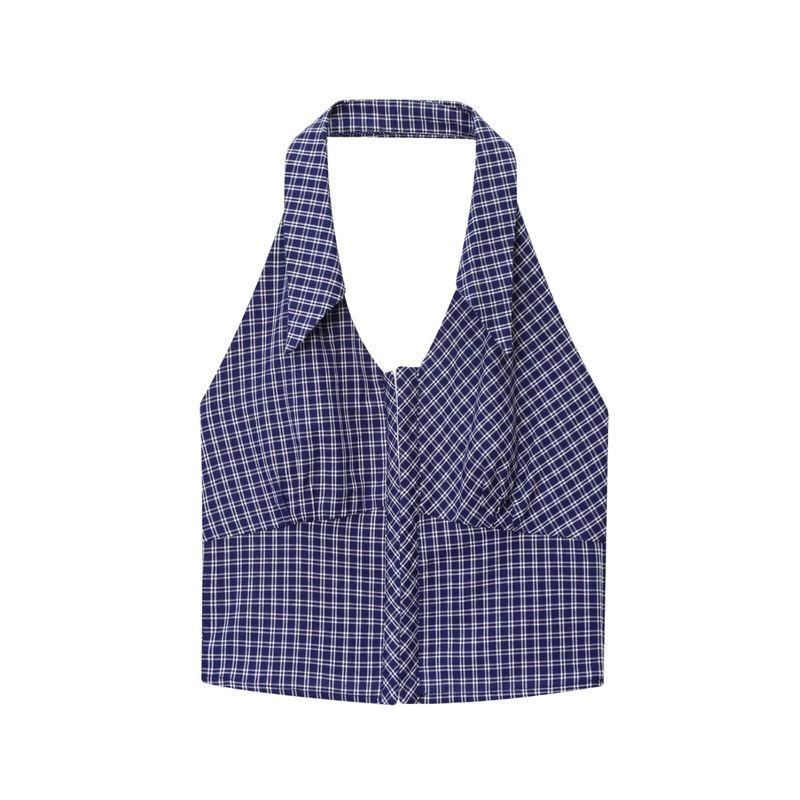 Kaslead New Women clothes Western Style Fashion Gyaru Hanging Neck Lapel Plaid Short Top