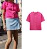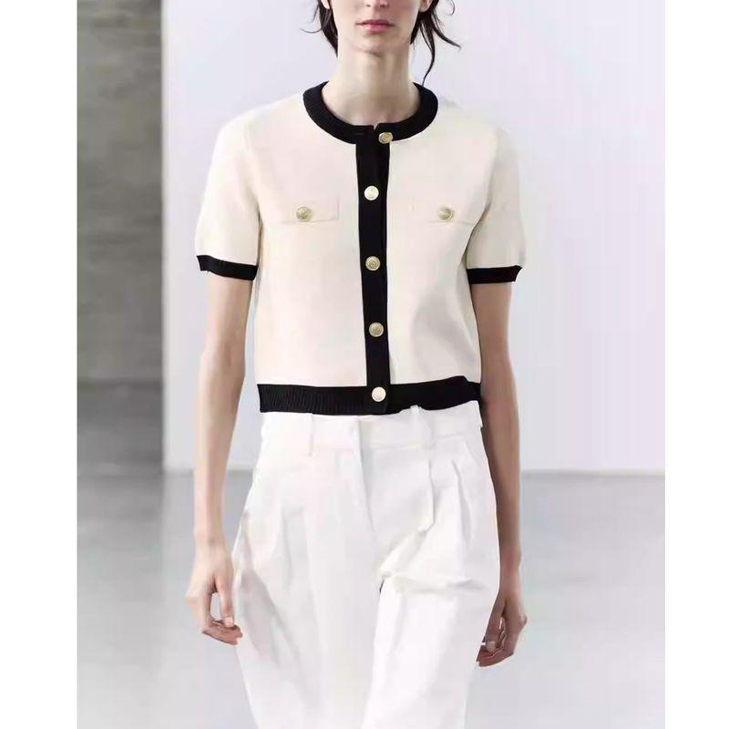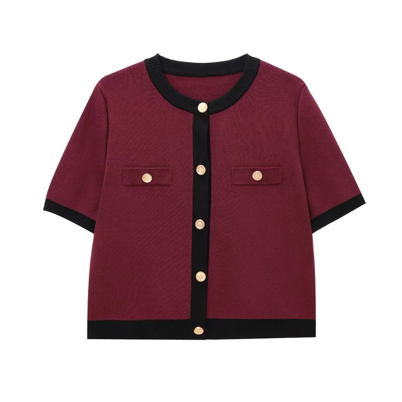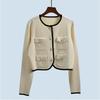 Summer New Women clothes Graceful Simple Golden Breasted Long sleeve round Neck Short Knitted Outerwear 1822006