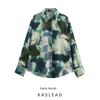 Kaslead New Arrival Women's Fashion Style Patchwork Print Silk Satin Texture Shirt 2298073