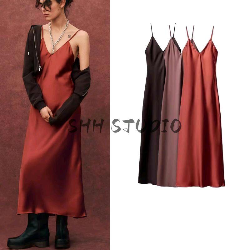 Весна Новая Женская одежда V-образный вырез Без рукавов Платье с текстурой шелкового атласа 9333331 4661271 4772333