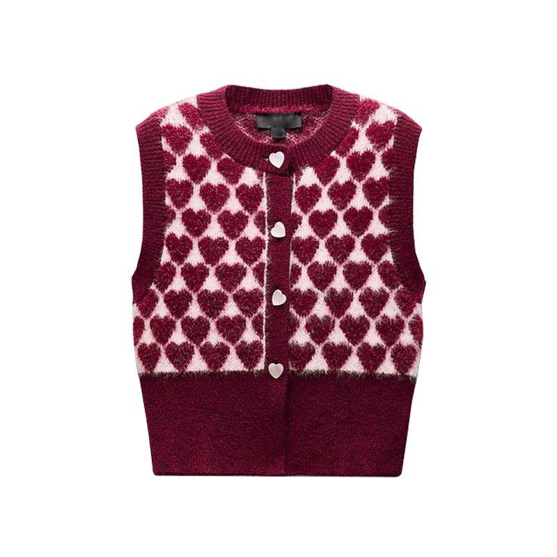 Spring New Women's Clothing Sweet Heart Pattern Jacquard Sleeveless round Neck Knitting Vest 4331017