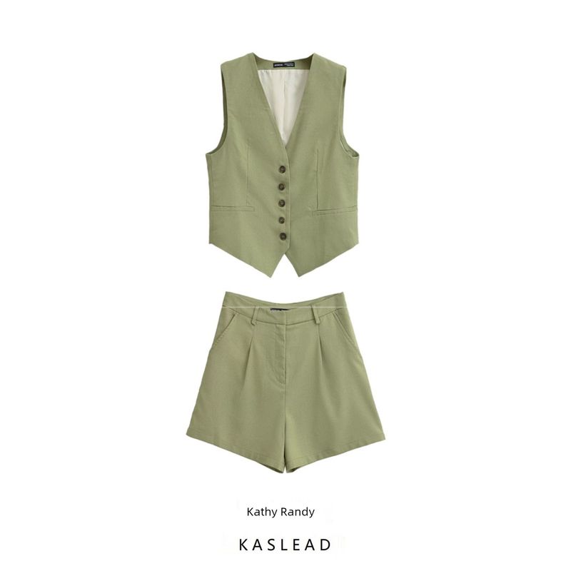 Kaslead New Arrival Women's Fashion Style Linen Blend Vest Casual Shorts 8025939 8026939