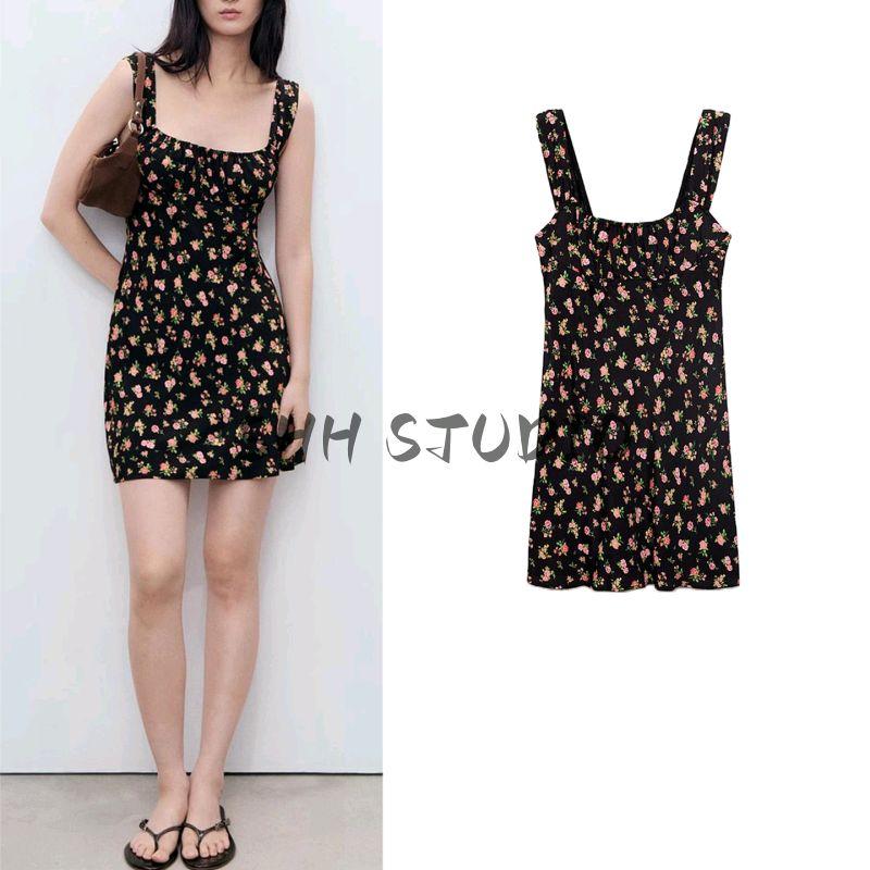 Летняя одежда Новая женская одежда Сексуальный стиль Квадратный вырез Майка А-силуэт Мини Платье с цветочным принтом 17091159