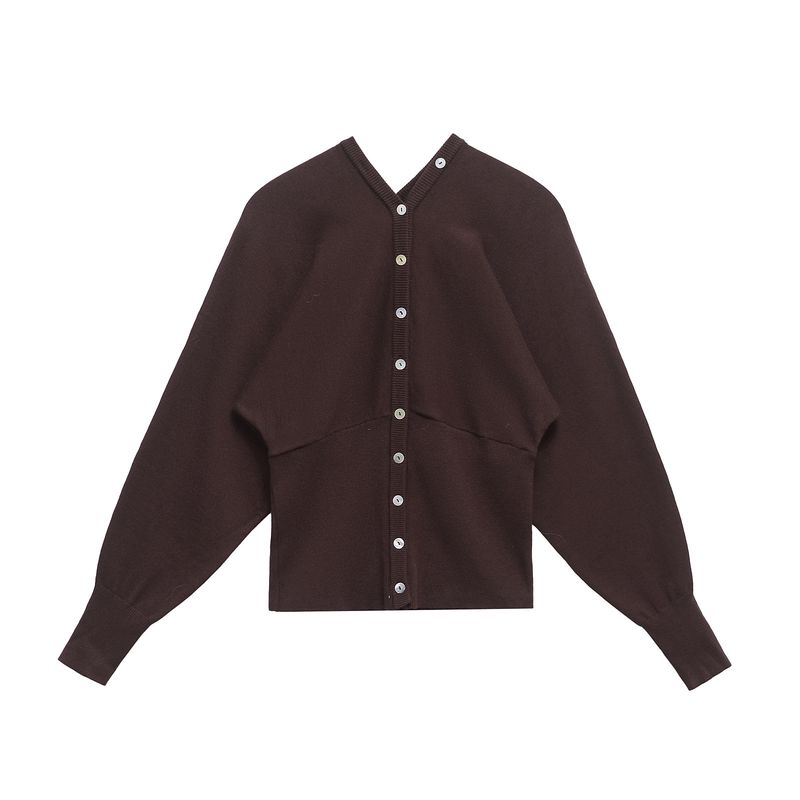 Kaslead New Arrival Women's Clothing Fashion Style Minimalist Silm Hem V-neck Long Sleeve Knitted Coat 8082100