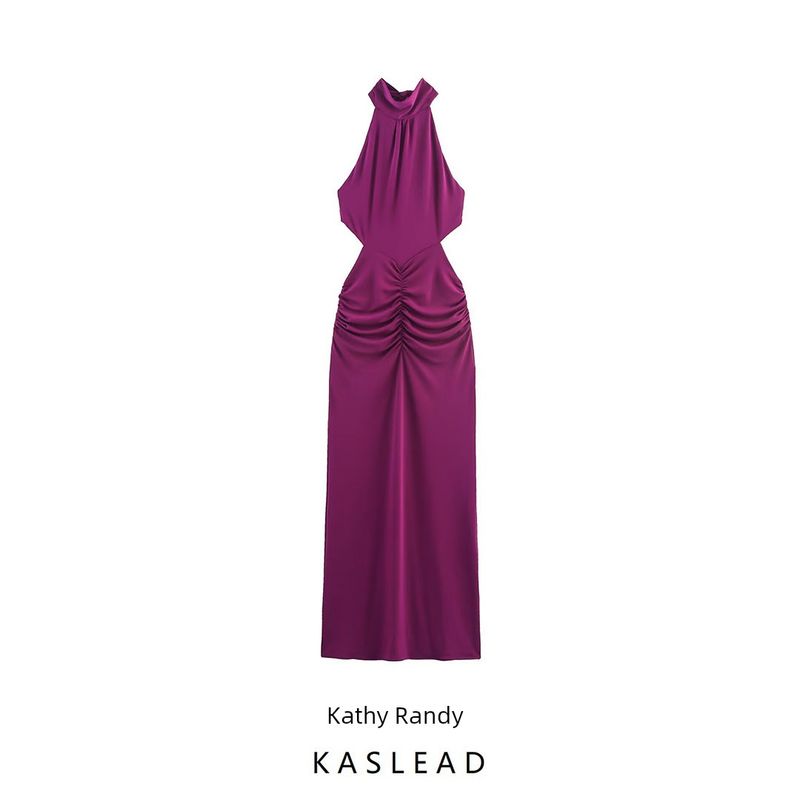 Kaslead New Women clothes Western Style Slim fit Pleat Hanging Collar Length Dress 5584304